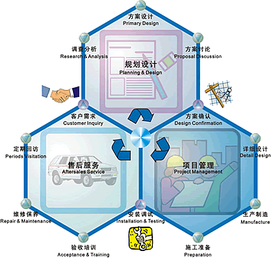1、本公司实行项目管理制度,每个客户由专人负责提供服务,项目负责人负责协调客户与公司之间的事宜,并负责协调公司各部门为客户提供服务。切实贯彻执行本公司的规章制度,达到所要求的生产、安装质量。