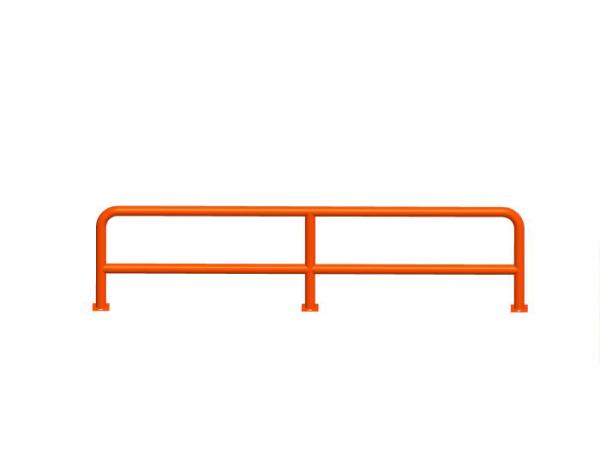 防撞护栏由圆管制造,保护货架免受叉车撞击,颜色一般为红色或黄色比较醒目,圆管多为75*2.0mm或89*3.0mm制作,单层或双层的,更好的保护货架立柱,防止叉车撞击而倾倒。